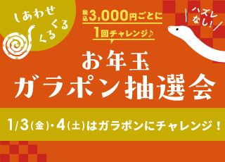 【実店舗限定】1/3(金)・4(土)いよいよ開催!抽選でHAPPYアイテムが当たる!2025年お年玉ガラポン抽選会